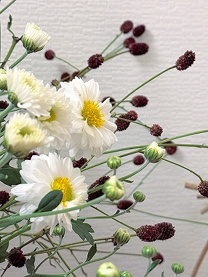 菊、ワレモコウ、南瓜、ナス、ネギ。