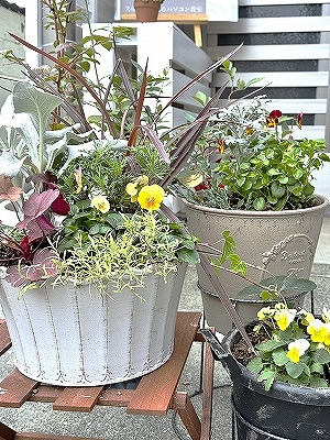 玄関前の寄せ植えも秋冬バージョンに植え替えしました。