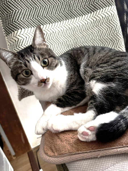 ↓ホットマットを敷いた椅子を乗っ取るネコハラ中です。
