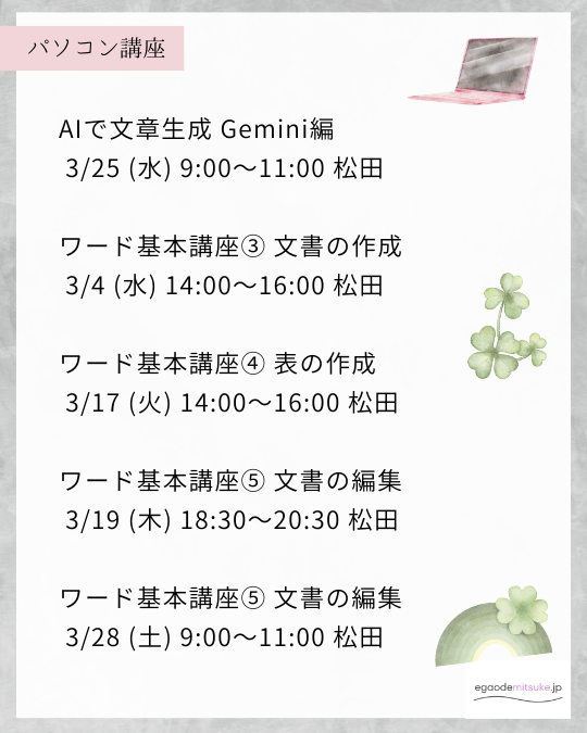 3月の講座日程