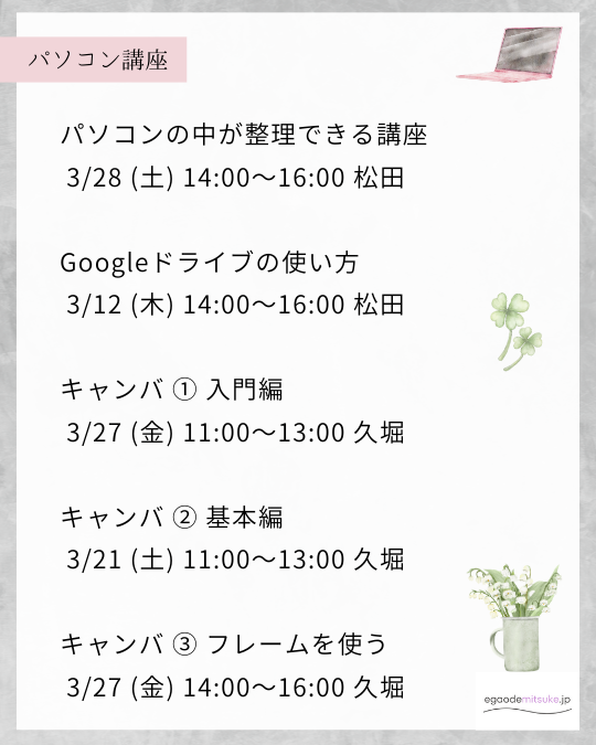 - パソコンの中が整理できる講座 3/28 (土) 14:00~16:00 松田