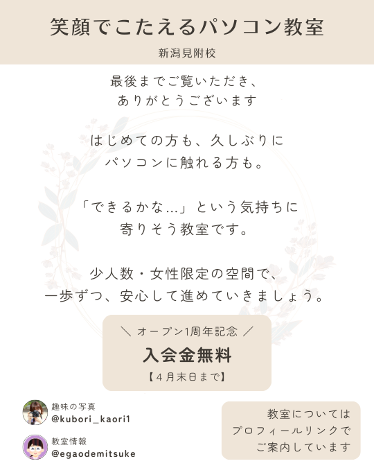 自分のペースで、女性同士で安心して学べる教室です。