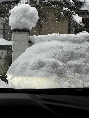 落とした雪で教室の腰高窓は埋まりましたが、これで生徒さんにも安心してカーポートに停めてもらえます。