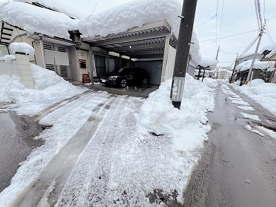 雪国らしくて良い光景だとも思いますが、それよりなにより、見通しゼロで危険ですね。