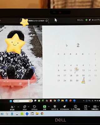 また「Canva6 メニューとサイン」の講座では、以前に「キャンバでカレンダー講座」を受けてくださった生徒さんが、さっそくお孫さんの写真でデスクトップ用のオリジナルカレンダーを作っておられ、見えた瞬間感動しました。
