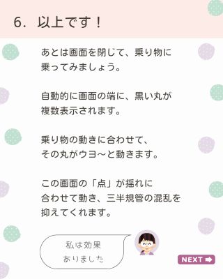 長時間はやっぱり不安なので試せていませんが、短時間でも酔ってた者とすれば、かなり耐えられるようになりましたよ。