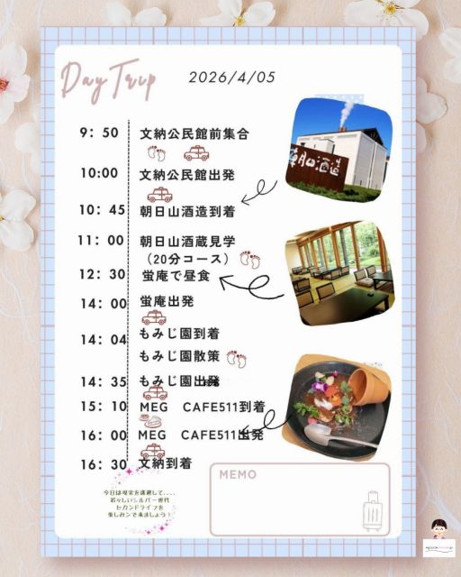 Canvaで作られた、春のお出掛けのしおりです。
